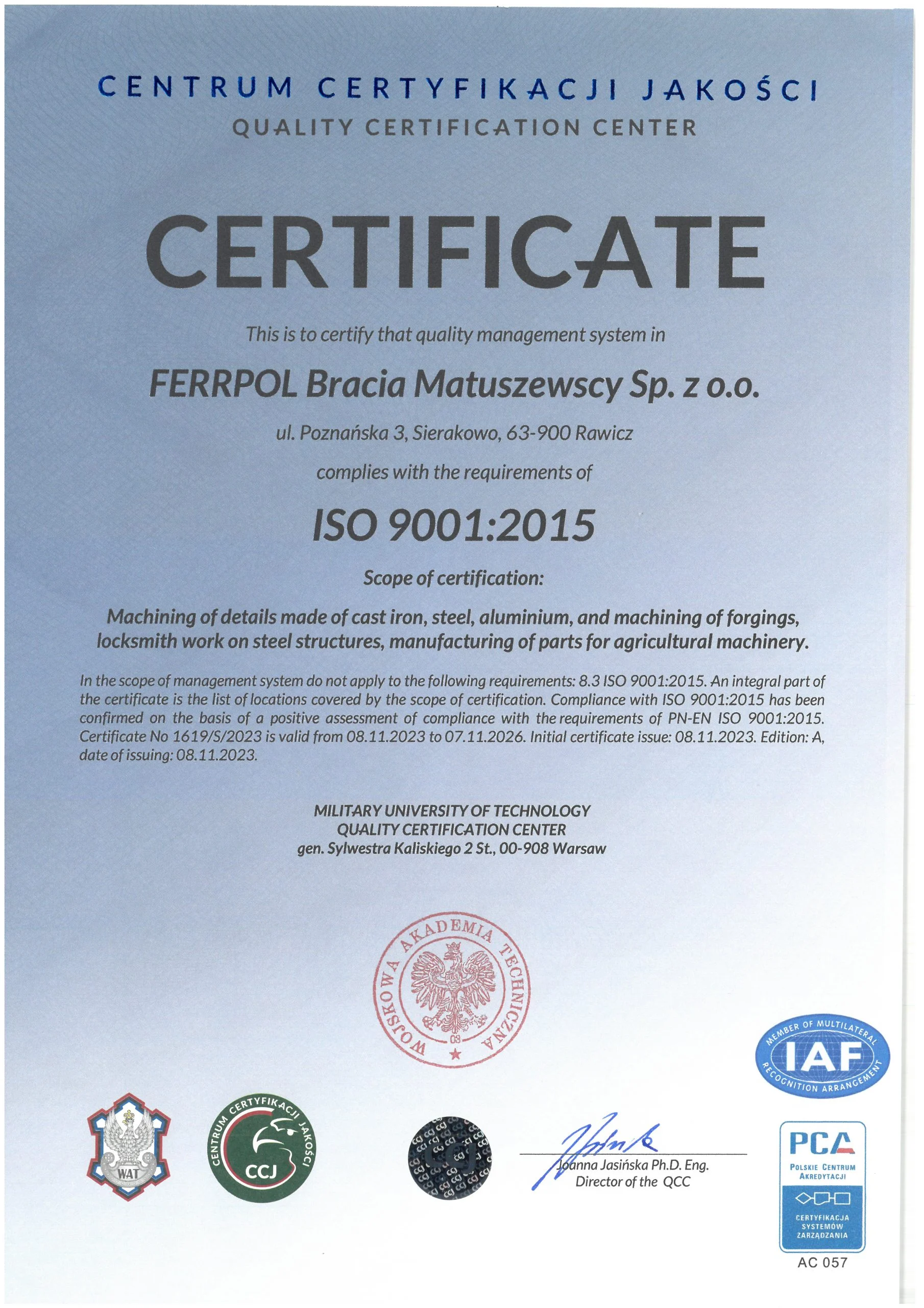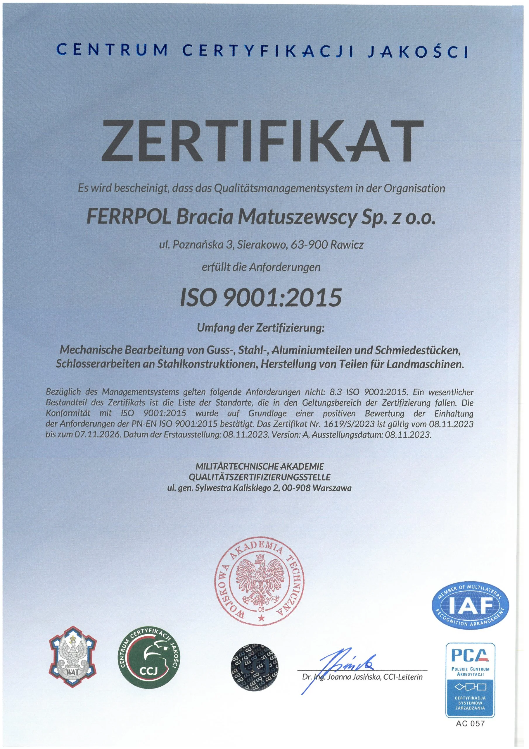 Pliki do pobrania FERRPOL Pliki do pobrania Standardy ochrony małoletnich Standardy ochrony małoletnich – wersja skrócona Standardy ochrony małoletnich Pliki do pobrania Machines specification update 2023 ISO 14001 DE ISO 9001 DE ISO 9001 ANG ISO14001 PL AQAP ANG ISO 14001 DE AQAP PL ISO9001 DE ISO14001 ANG